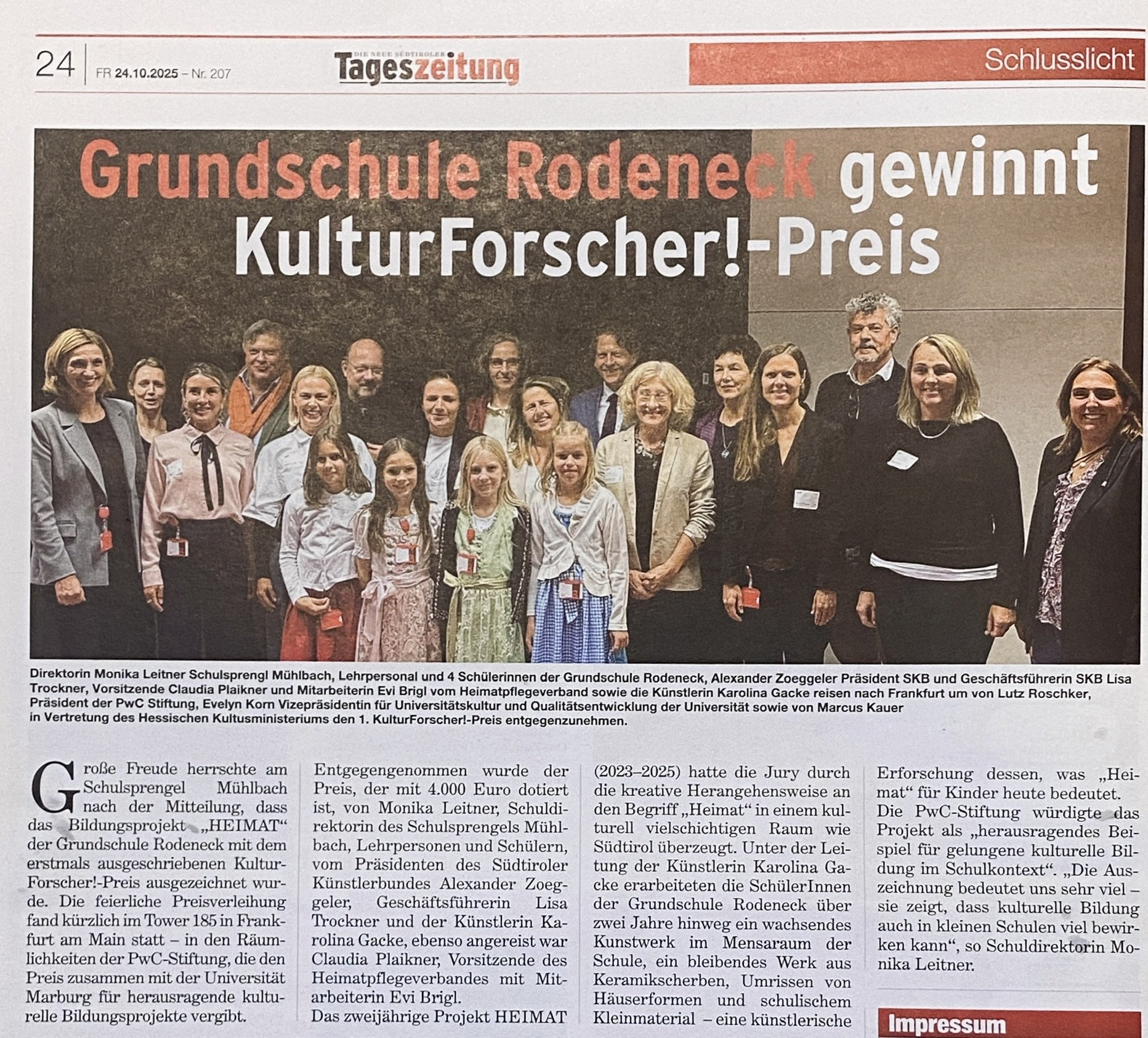 Thank you to the local newspaper Dolomiten Tagesblatt for the article.