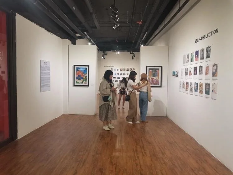 The exhibition “Art no distance” is divided into themes- self-reflection, new activities, COVID 19 and masks, the city, conceptualism, love, expression and escape.