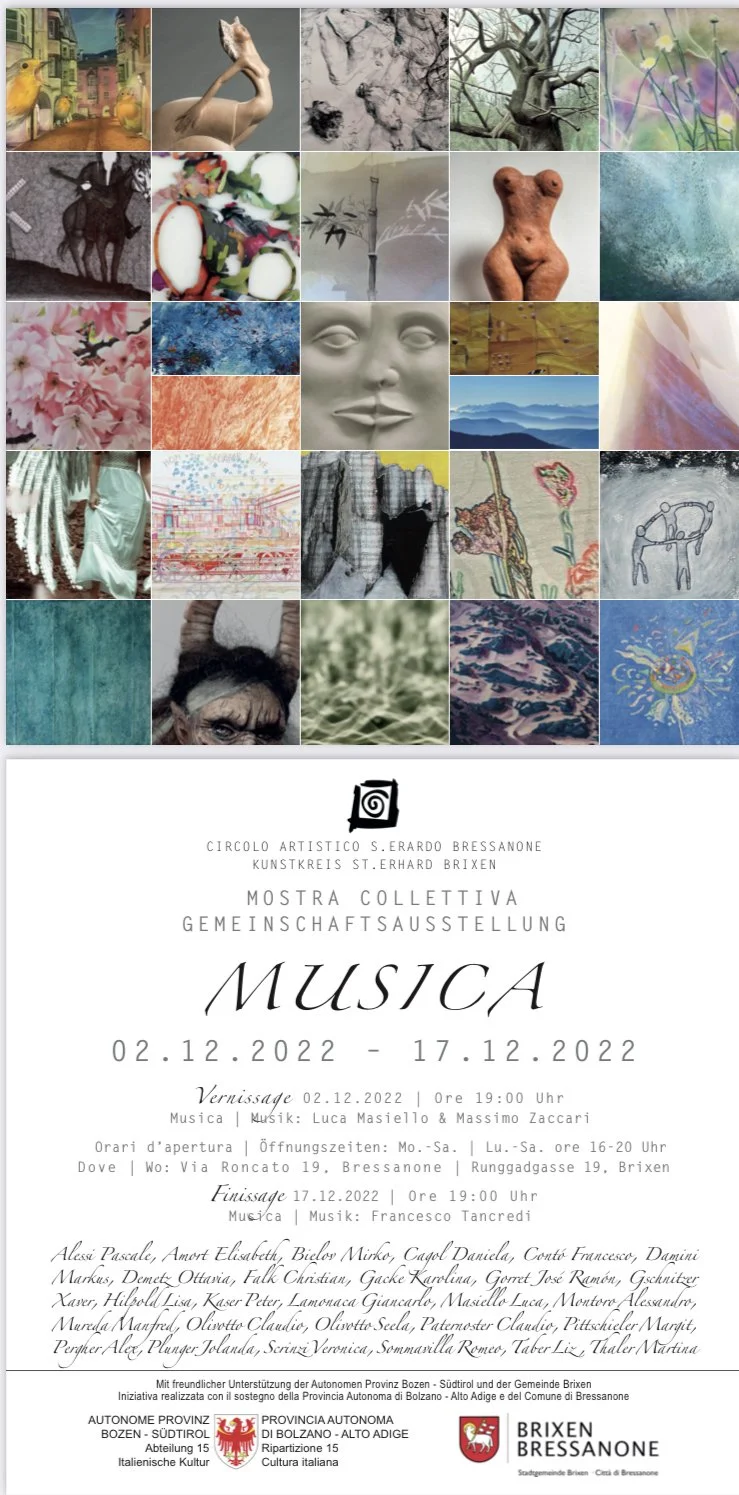 I am happy to be taking part in this group exhibition in Brixen, South Tyrol. Different local artists will be exhibiting artwork on the theme of “music”.