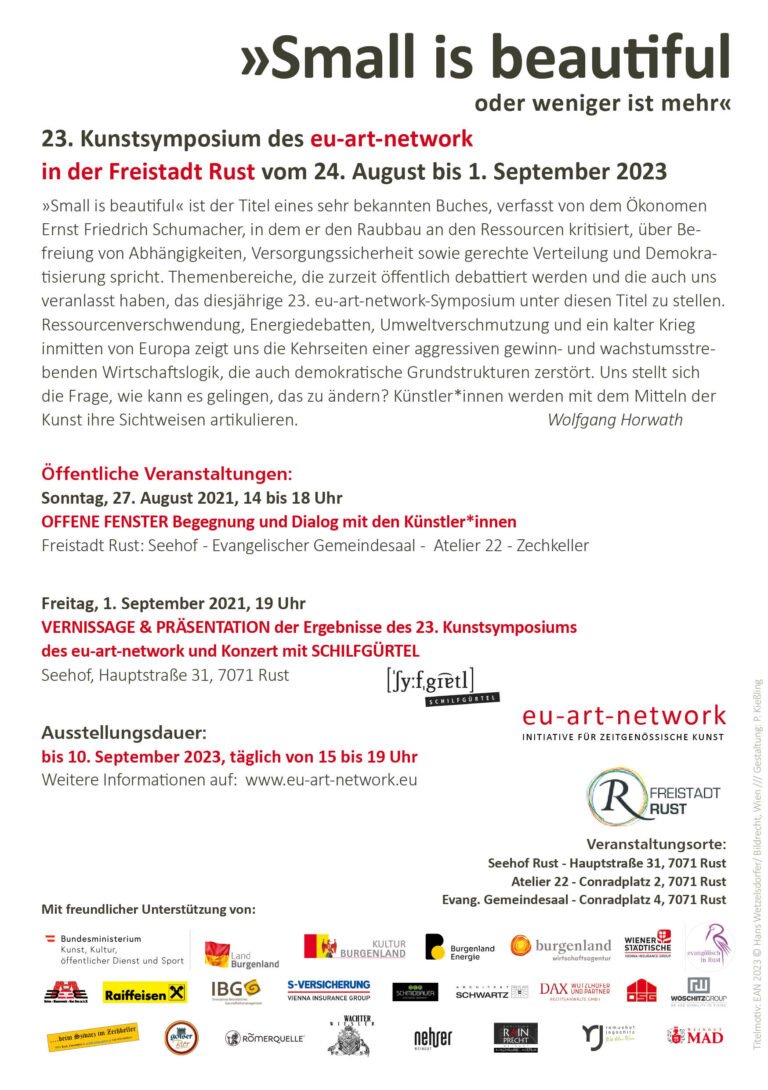 I am so happy and honored to have been invited to represent South Tyrol in the 23rd Art symposium organized by the eu-art-network in Rust, Austria.